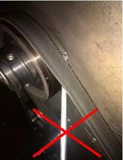 正確操作:皮帶安裝完成后,沿皮帶摸一圈,防止皮帶安裝錯(cuò)位