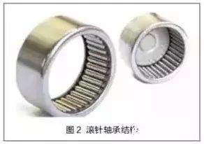 位于傳動(dòng)軸上端的滾針軸承,其僅通過(guò)泄漏液壓油進(jìn)行潤(rùn)滑。由于該部位循環(huán)的液壓油量非常少,造成該軸承潤(rùn)滑不良,其內(nèi)部的污染物不能及時(shí)排出。在回轉(zhuǎn)馬達(dá)高速旋轉(zhuǎn)產(chǎn)生的高溫作用下,滾針軸承與污染物之間產(chǎn)生干摩擦,加劇了其磨損。滾針軸承結(jié)構(gòu)如圖2所示。