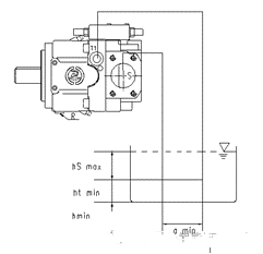 ◆軸向柱塞泵在油箱內(nèi)安裝,低于油箱的最低油位。軸向柱塞泵完全在液壓流體下面。