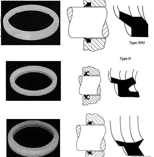 活塞桿密封圈也被稱作U型杯,是主要的活塞桿密封件,安裝在液壓缸端蓋內(nèi)側,作用是防止液壓油外漏?;钊麠U密封圈由聚氨酯或丁腈橡膠制成,在某些場合,需要與支撐環(huán)(也叫擋圈)一起使用,支撐環(huán)用于防止密封圈在壓力作用下發(fā)生擠壓變形?;钊麠U密封圈也有多種變體。