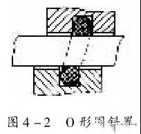 2) 回轉(zhuǎn)密封時(shí)O形圈可斜置。O形圈用于回轉(zhuǎn)密封時(shí), 線速度不能太大, 一般以O(shè).3~0.5m/s為宜, 否則會(huì)漏油。因?yàn)閛形圈用于旋轉(zhuǎn)密封時(shí), 在接觸處產(chǎn)生摩擦熱, 溫度 不斷上升, 在接觸處出現(xiàn)斷油現(xiàn)象造成磨損和老化。且處于拉伸狀態(tài)的橡膠遇熱產(chǎn)生收 縮現(xiàn)象 (焦耳效應(yīng)) 。即產(chǎn)生 “摩擦熱 , 收縮 , 箍緊力增大 , 產(chǎn)生摩擦力 , ??” 反復(fù)循 環(huán), 大大加劇了橡膠老化龜裂和磨損, 導(dǎo)致密封失效, 產(chǎn)生泄漏量與轉(zhuǎn)速有關(guān), 為此, 一般 將O 形圈內(nèi)徑設(shè)計(jì)成與轉(zhuǎn)軸直徑相等或稍大一些 (3~5%) 。在安裝時(shí)使 ( 形圈從外 向里壓縮, 并將斷面的壓縮量也設(shè)計(jì)得小一些 (約5%) 。此外, 盡量使用耐熱的材料, 并 考慮 O形圈的散熱和潤滑。另外可斜置安裝O形圈 (圖4-2) 。采用這些措施后, 可達(dá) 到pu值 (密封壓力 6 線速度) 為5.6MPa*7.65m/s=42.84MPa.m/s的值。