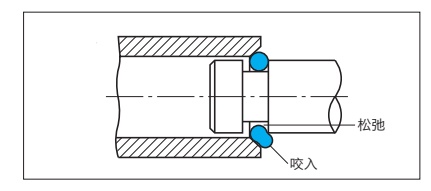 將小徑O形圈使用于圓柱活塞時,請將裝入時的最大伸張率的上限標(biāo)準(zhǔn)設(shè)為橡膠材料特性值伸長(EB)的40%。當(dāng)設(shè)定的伸張率越接近上限標(biāo)準(zhǔn),O形圈在溝槽內(nèi)的松弛度越高。
