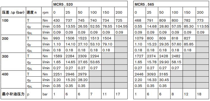 從小表也可以看出,在相同工作壓差下,隨著轉(zhuǎn)速的增加輸出扭矩先增大后減小。